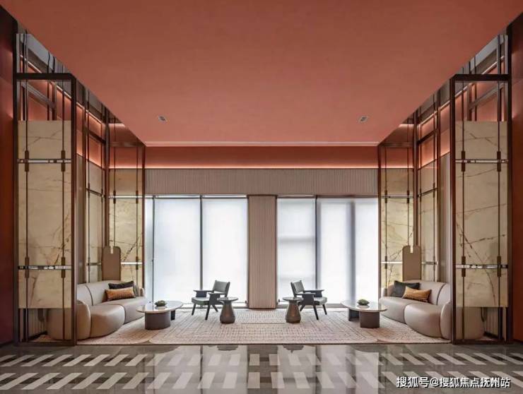 空间中轴线上更以“诞生”为主题打造了一座水滴状镜面艺术装置,以小中见大的方式,折射周围空间环境,象征紫金蘭轩所营造的生活,也像这件艺术品一样,集萃万物、流光溢彩。