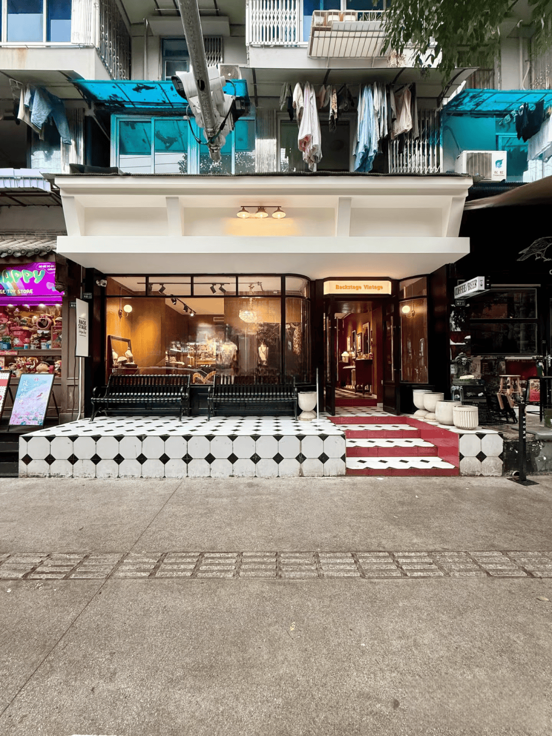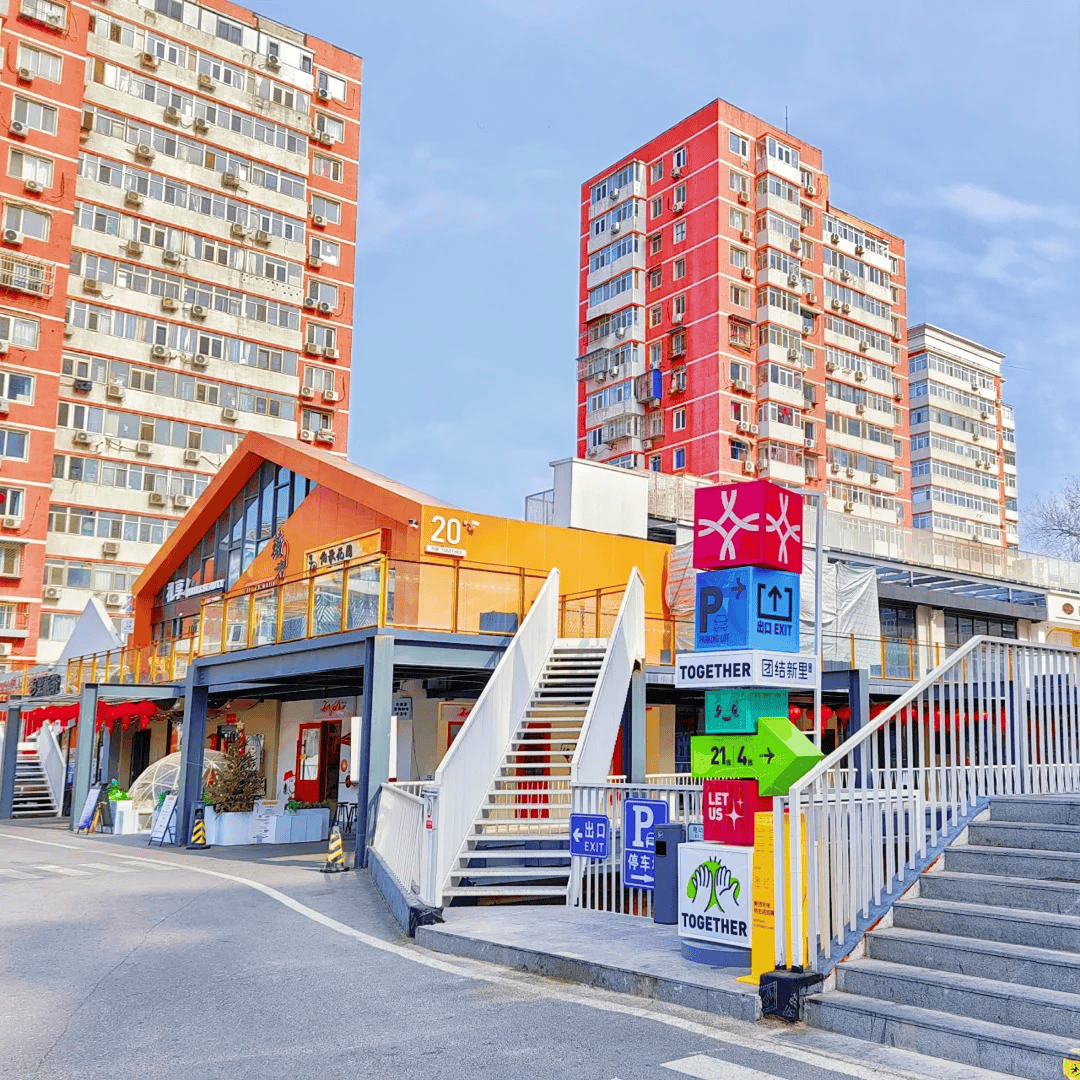 在空间改造中,其拓宽人行步道,增设休憩座椅、共享单车存放处等设施,提升步行体验;通过统一店招设计(如米色、砖红色调)强化街区视觉统一性,还调整建筑布局以减少对居民楼的影响。