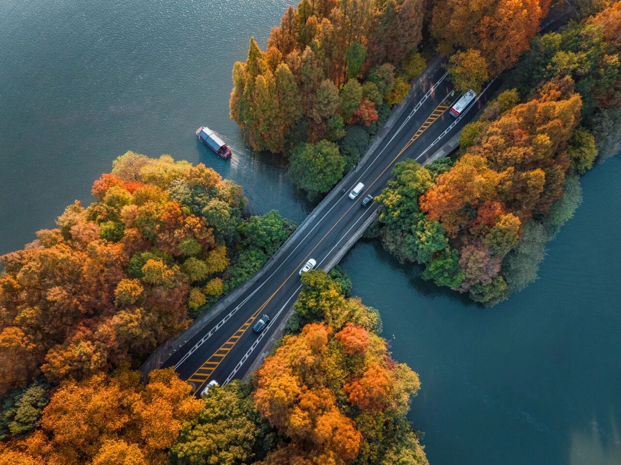 这条路线的浪漫藏在每段风景里:北山街的梧桐叶在秋日泛黄,秋风掠过湖面时,波光与树影交织成“秋水共长天一色”的画卷;白堤的柳丝偶尔拂过脸颊,温柔化解跑步的疲惫;杨公堤的水杉、红枫层层叠叠倒映水中,比苏堤更添清幽意境。跑完全程,既是运动挑战,更是一场艺术创作。