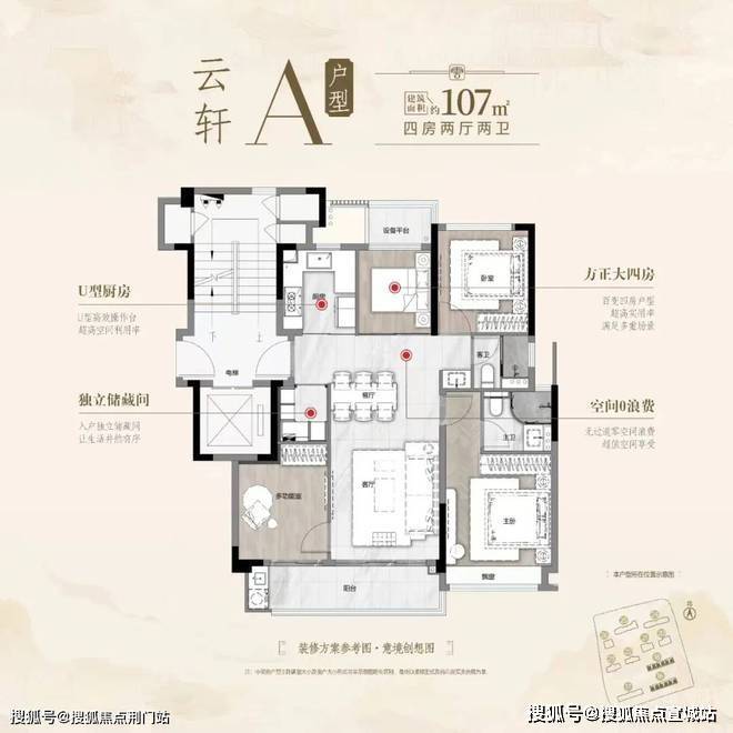 就拿最近在购房群里热议度较高,建筑面积约107平方米的户型来说,起步就是满配.