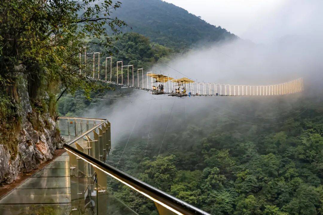 地处石林镇,是中国四大石林之一,以“怪石、悬崖、古道、灵洞”为主,峰林造型奇特,被称为“华东第一石林”。景区内森林覆盖率96%,空气优良、清新(负氧离子浓度含量大于5000个/cm³),年平均气温14.7℃,具备良好的游玩、住宿等条件。飞拉达、好怕怕尼泊尔桥、120米峡谷大秋千……在这里都能体验到。