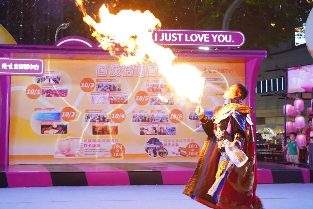 市区港惠购物中心让传统文化与商业深度融合,构建起极具吸引力的夜间消费场景。依托“蝶树溪谷”文化主题街区与“罗浮里街”两大开放式空间优势,积极发展夜经济。商场在双节期间迎来客流高峰,12米超大爱心气模与5米高萌兔空降中心广场,专属花车与大屏“表白祖国”互动装置引得市民纷纷驻足打卡。“斑斓市集”里,手作匠心、创意好物与特色小吃琳琅满目,延续着“烟火拾光”市集的热闹氛围。