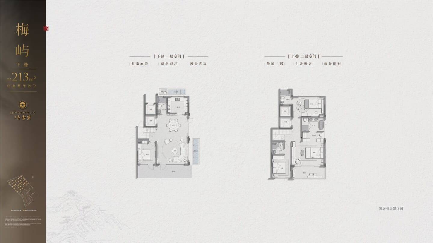 采用三面庭院与L型景观面设计,部分西边套主卧独占整层,可俯瞰超山景致地下空间层高5.6-5.7米,面积160-200㎡,可自由规划多元功能区