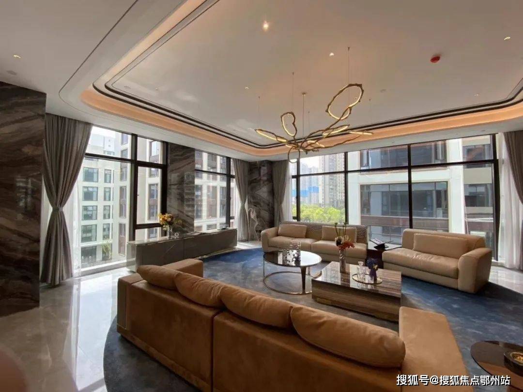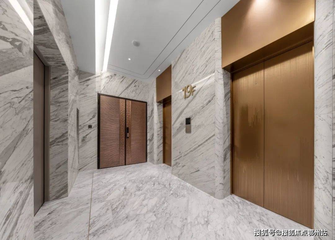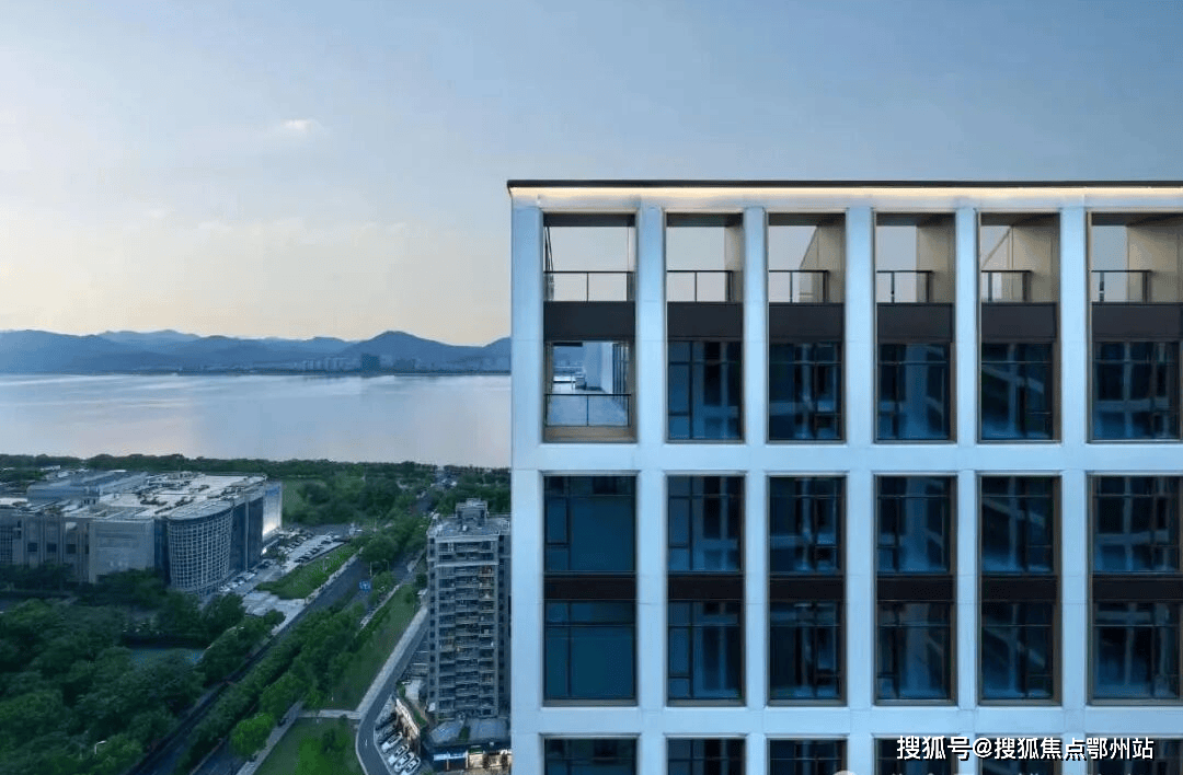 建筑以“金镶玉”为灵感,白色铝板镶嵌香槟金窗框,搭配LOW-E双层中空玻璃幕墙,形成油画框般的立面美学。每户标配约40㎡U型空中花园,可定制私人泳池、森系庭院或星空酒廊,270°全景落地窗将钱江潮涌、西湖群山与城市灯火尽收眼底。