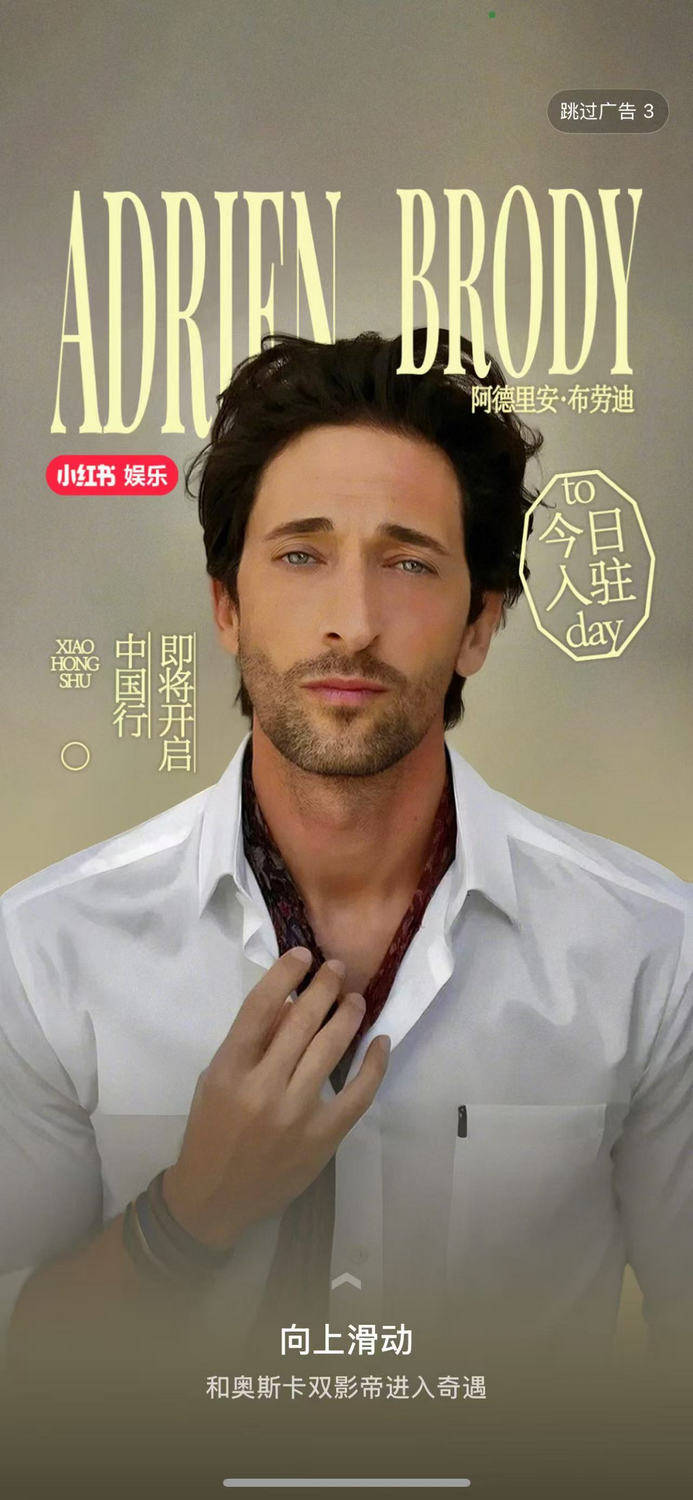 总部位于纽约的UNIPX GROUP多年深耕中外文化与商业交流领域,长期与中国各大网络平台保持紧密合作。在此次布劳迪中国行前夕,为扩大线上传播声量,UNIPX GROUP与小红书及微信视频号平台分别达成战略合作关系。在中国行的启动时刻,阿德里安·布劳迪同步官宣入驻两大平台,瞬间点燃网友关注热情。 布劳迪的小红书账号10天内涨粉突破30万,创造2025年艺人全新入驻社交媒体平台的涨粉记录。