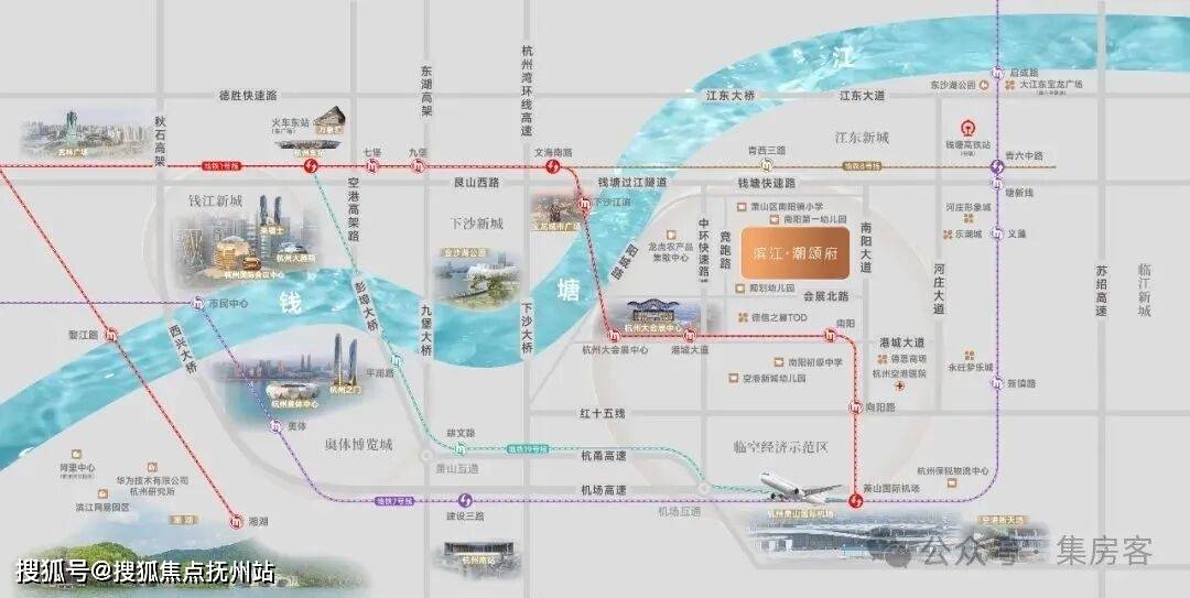 位于大会展中心周边1公里的核心区域,牢牢占据临空经济示范区核芯,不仅远见板块崛起,其交通优势更是堪称“王炸”,将杭州繁华版图紧密缝合。