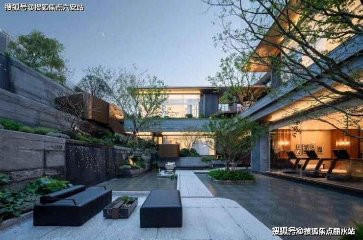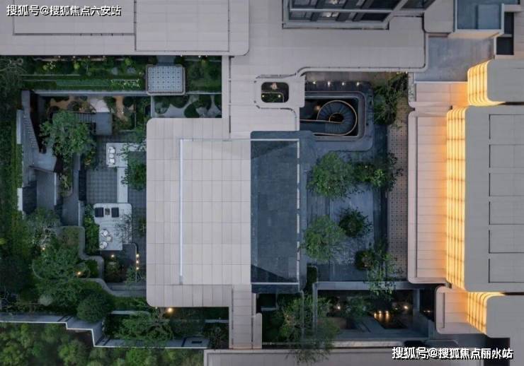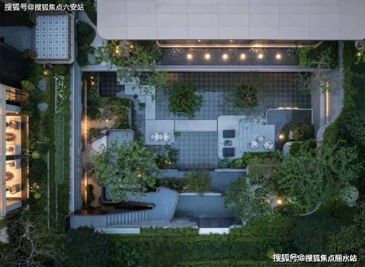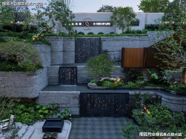 ,将功能空间与园林景观融为一体,营造庭间有园、步移景异的游园“叙事感”。园林设计采用全风雨连廊,串联“两心六组团”景观园林,打造林下花园、台地花园、特色叠水等景观节点。小区最大亮点是打造了下沉式庭院与下沉式会所,位于生活馆与后场庭院之间,打造超7.5米的高差的台地花园。