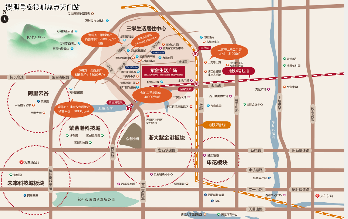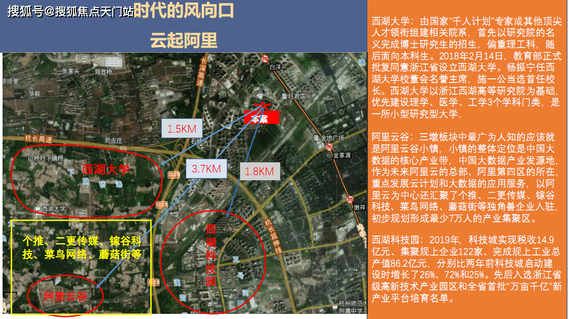 3、板块内集聚阿里云、个推、二更传媒、镓谷科技、菜鸟网络、蘑菇街等新型科技企业,形成强大的产业枢纽,为区域带来数十万人口的居住和投资需求。