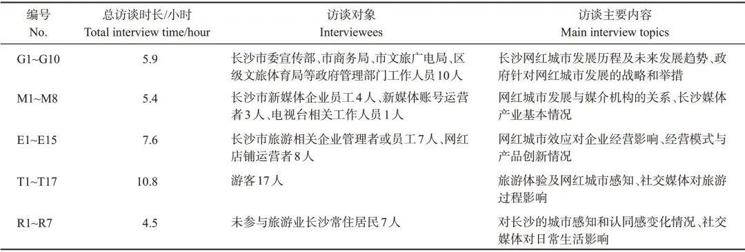 注:受访者根据其主要身份或职能进行分类,部分受访者具有多重身份。文中以类别代码指代受访者:其中,G为政府部门工作人员,M 为媒体相关从业者,E为旅游企业相关运营管理者或员工,T为游客,R为未参与旅游业常住居民。编号根据访谈顺序依次排列。