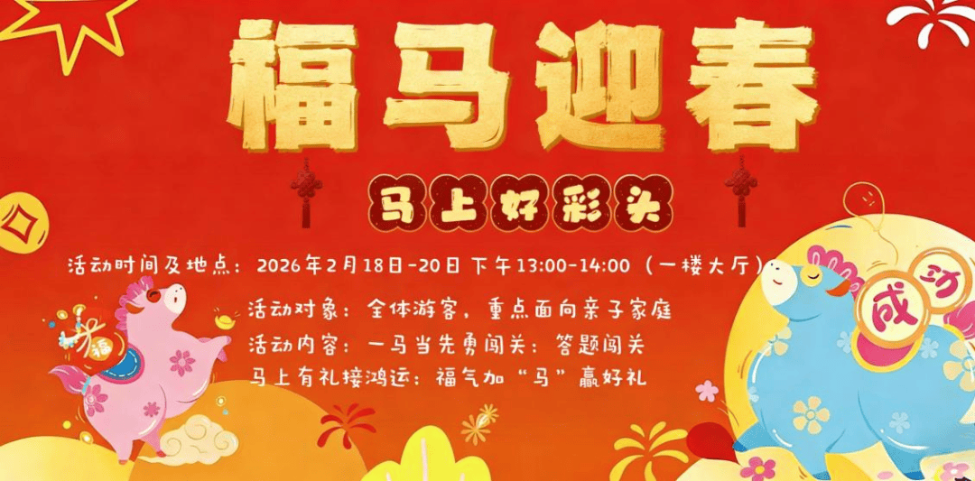 来博物馆开启一场神奇的骏马之旅!从“狂奔的小马”趣味热身,到探秘马的身体构造与习性,在互动游戏与生动讲解中,你将化身知识小骑手,既能收获有趣的动物科普,又能沉浸式体验热闹欢腾的新春氛围!