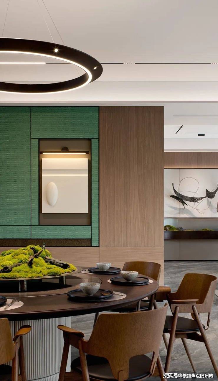 结合中国古代文人在宅邸庭院游园聚会的雅集生活,琚宾提取经典名画《西湖全景图》中的丹青意蕴,执笔T-ONE潮博「SONG370」,以青绿山水的杭州城市底色,将文化和艺术穿插其中,晕染整体空间的风雅色调,犹如一处献给杭州的礼物。
